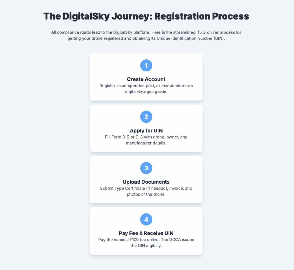 - Drone Registration in India – Application Process – IndiaFilings, accessed on June 19, 2025, https://www.indiafilings.com/learn/drone-registration/