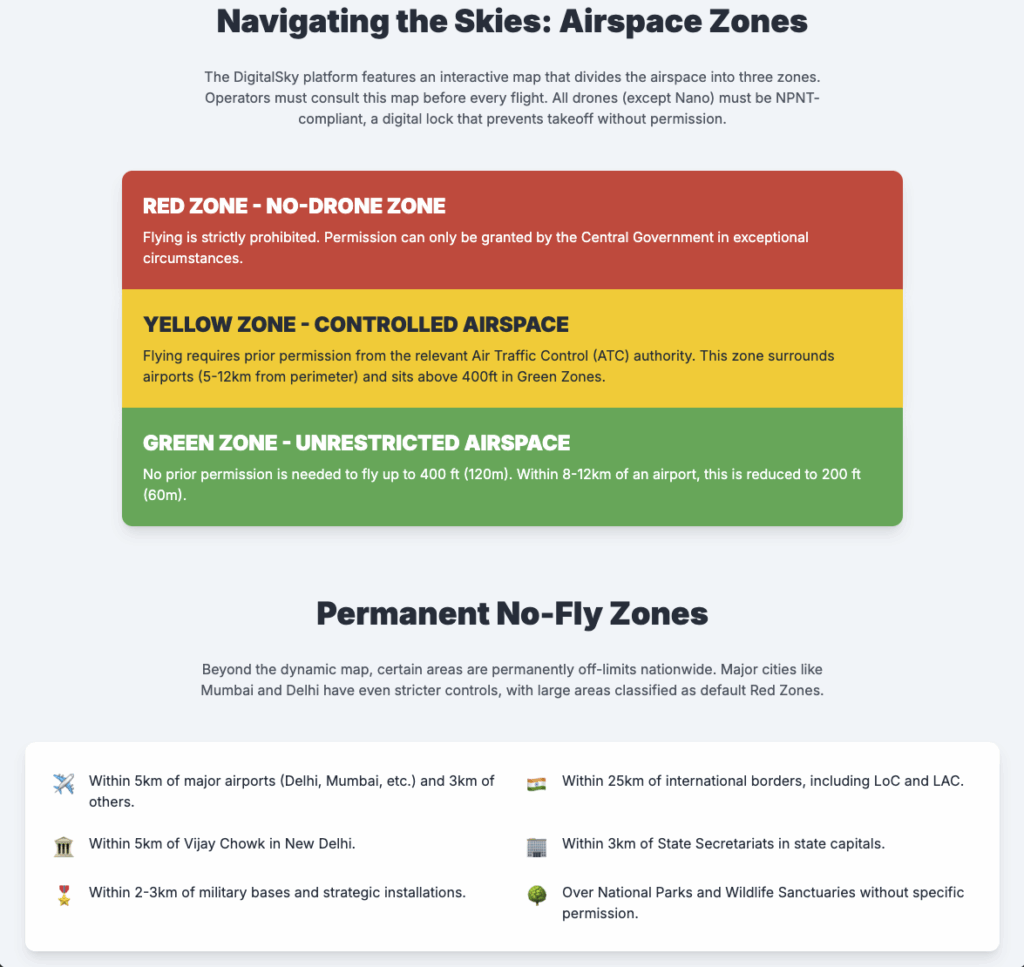 - India’s No-Fly Zones for Drones: What You Need to Know – Flapone Aviation Blog, accessed on June 19, 2025, https://www.flapone.com/blog/india-no-fly-zones-for-drones-what-you-need-to-know