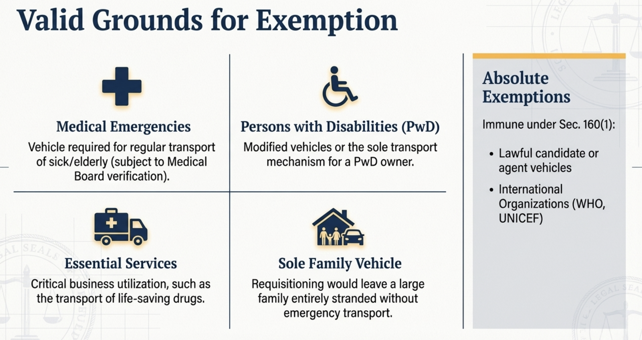 - File Representations Promptly: If a vehicle is needed for medical or essential personal use, file an application for exemption immediately upon receipt of notice. Do not wait for the “reporting date” to raise objections.10