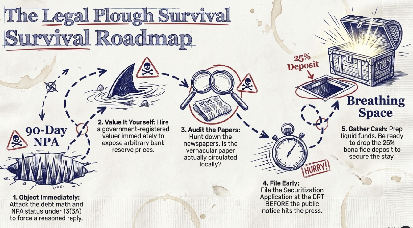 - Immediate Objection: Upon receiving a 13(2) notice, file a detailed representation under 13(3A) challenging the debt calculation and the NPA status.3