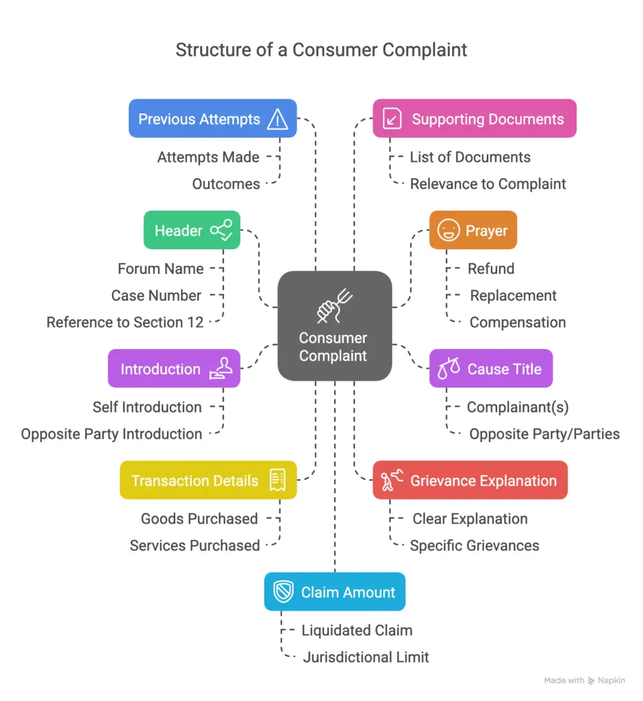 Before formally filing a complaint, it’s advisable to send a legal notice to the service provider or seller. This notice should include: