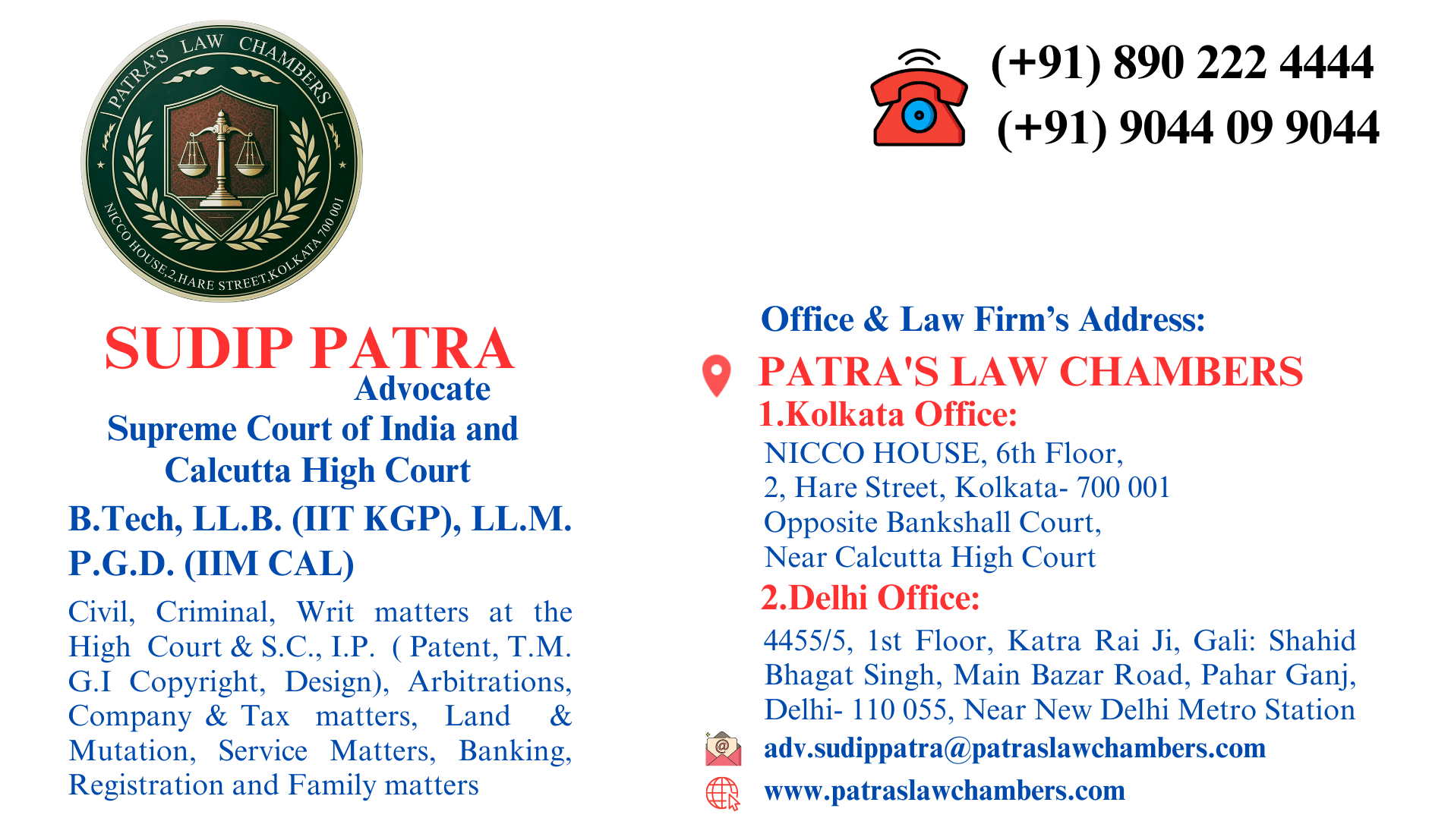 Advocate Sudip Patra (+91) 890 222 4444/ 9044 09 9044