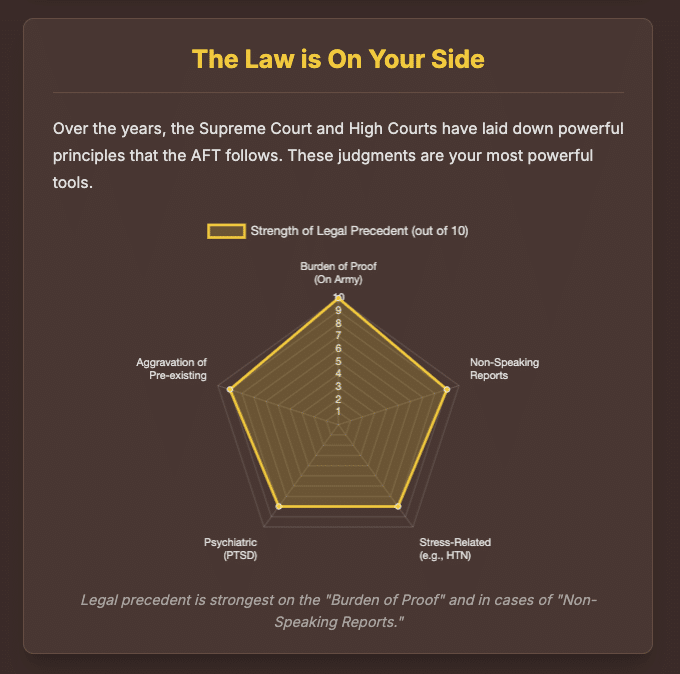 This principle is the philosophical bedrock of the disability pension. However, the path to securing this right is often fraught with administrative and legal challenges. The executive branch, tasked with implementing pension regulations, has frequently adopted a restrictive interpretation, leading to a high volume of litigation. This is evidenced by the Supreme Court’s observation in UOI v. Ex Hav. Attar Singh, where it admonished the government for dragging service members to court over granted pensions and called for a more “benevolent approach”.1 Consequently, the judiciary, particularly the Armed Forces Tribunal (AFT) and higher courts, has emerged as the ultimate guardian of soldier welfare. The courts consistently interpret pension rules as beneficial provisions designed to fulfill a national duty, intervening to ensure the spirit of the law is upheld against overly rigid administrative interpretations. This guide serves to illuminate the path for service members, clarifying their rights and the procedures to secure them, fortified by the very legal precedents that protect them.