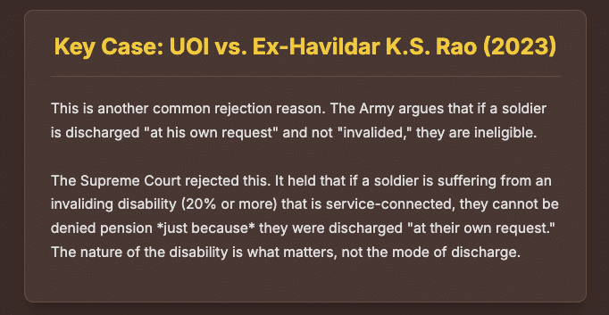 The interpretation of pension regulations is not static; it is a dynamic area of law continuously shaped by landmark judgments from the Supreme Court and various High Courts. These judicial precedents are not mere suggestions; they are binding on all lower authorities, including Medical Boards, the Pension Sanctioning Authority, and the Armed Forces Tribunal. They establish the correct legal framework for interpreting the rules and ensure that the rights of service personnel are protected.