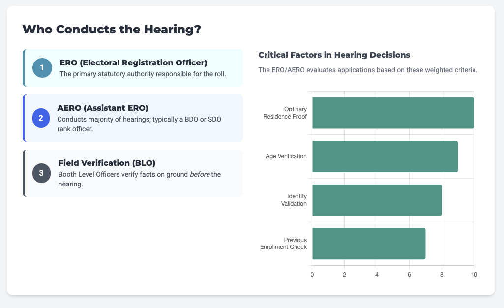 - Identity Verification: The voter must present the Hearing Notice and a primary Identity Document (EPIC/Aadhaar) to the verifying officer.