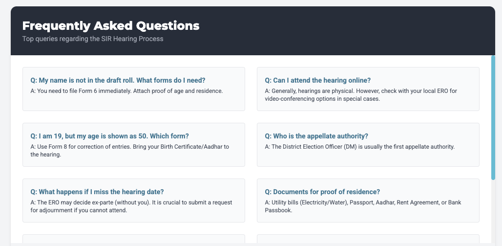 - Are NRI voters part of SIR? They use Form 6A; usually not summoned to local camps unless they are on the general roll.
