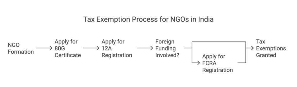 - Tax exemptions for NGOs include 80G and 12A registrations under the Income Tax Act, 1961.