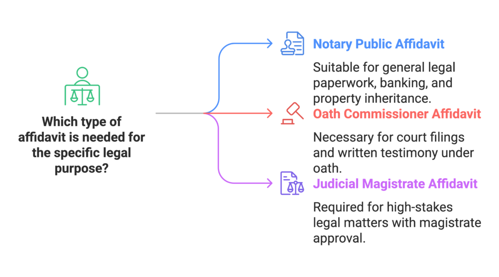 Judicial Magistrate Affidavit – This carries the highest legal authenticity, reviewed and approved by a Magistrate or Judge. It is mainly required in high-stakes legal matters and criminal proceedings.