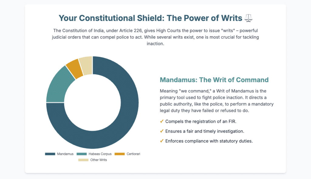 In such critical circumstances, the Indian Constitution provides powerful remedies known as “writs.” These formal written orders, issued by the superior courts, serve as a beacon of hope, compelling public authorities, including the police, to perform their statutory and constitutional duties. Writs often represent a last resort when all other avenues for redressal prove futile.