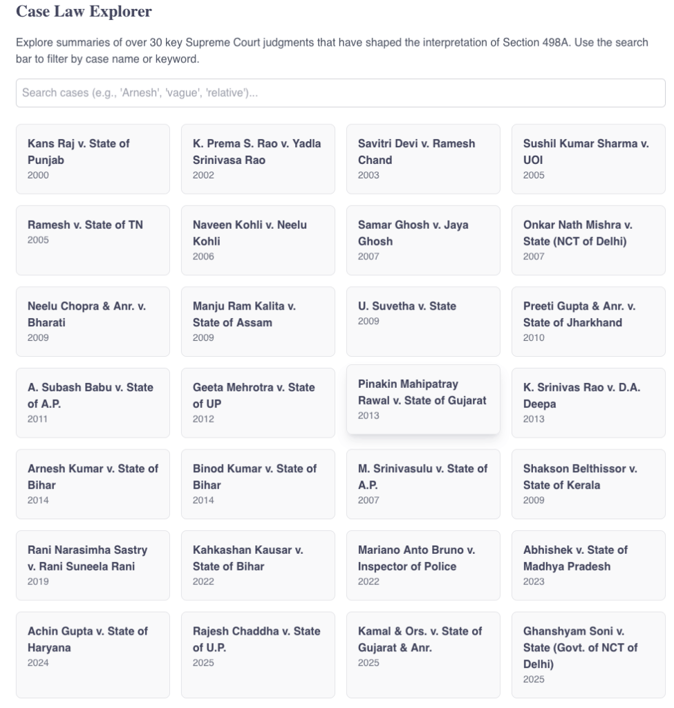 - 498a ipc doctypes: judgments – Indian Kanoon, accessed on June 20, 2025, https://indiankanoon.org/search/?formInput=498a%20ipc+doctypes:judgments