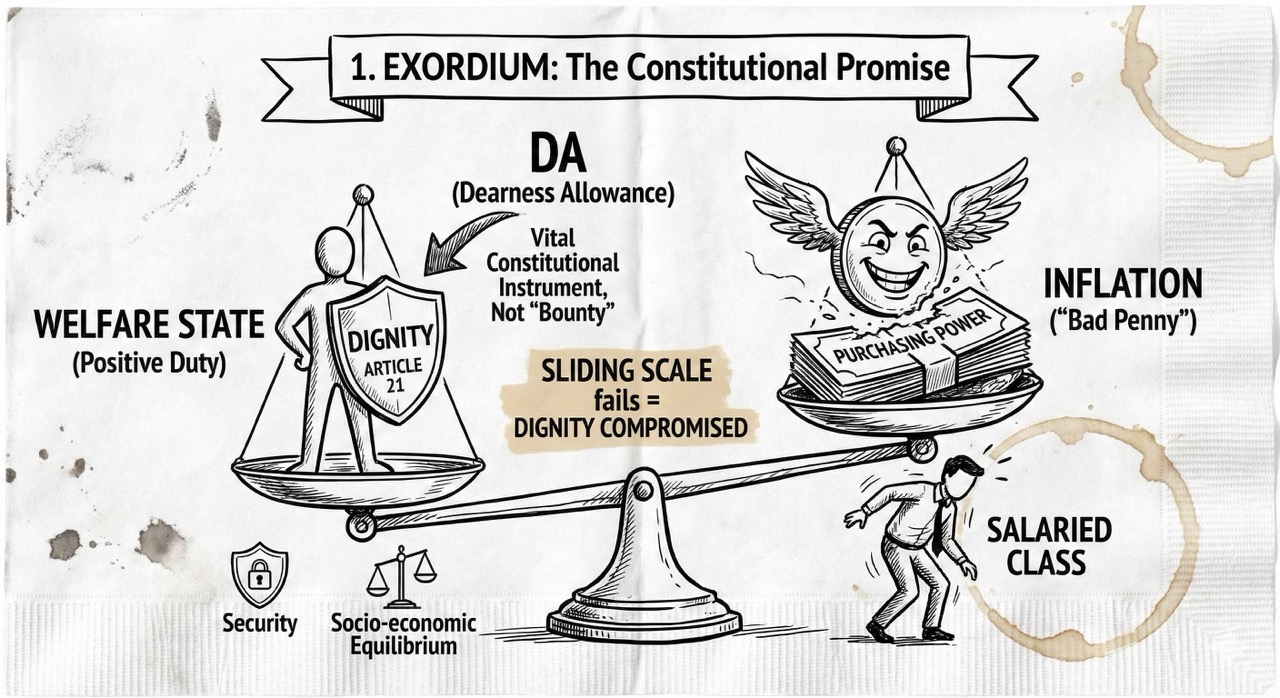 The Court strategically characterizes inflation as the “bad penny” of modern economics—a persistent threat that erodes purchasing power and strikes at the heart of the salaried class. By synthesizing the “model employer” doctrine with human rights, the Court anchors the payment of Dearness Allowance (DA) within the expansive ambit of Article 21. Drawing upon the felicitous articulation of P.N. Bhagwati J. in Francis Coralie Mullin, the judgment reminds us that the right to life is not a mandate for mere animal existence; it is the right to live with human dignity, encompassing the bare necessities of life. Dignity is compromised when the “sliding scale” of compensation fails to keep pace with the rising cost of living. Consequently, DA is not a “bounty” or an act of ex-gratia benevolence; it is a vital constitutional instrument for preserving the substance of a living wage. This philosophical grounding provides the necessary context for the legal dissection of the West Bengal Revision of Pay and Allowance (RoPA) Rules.