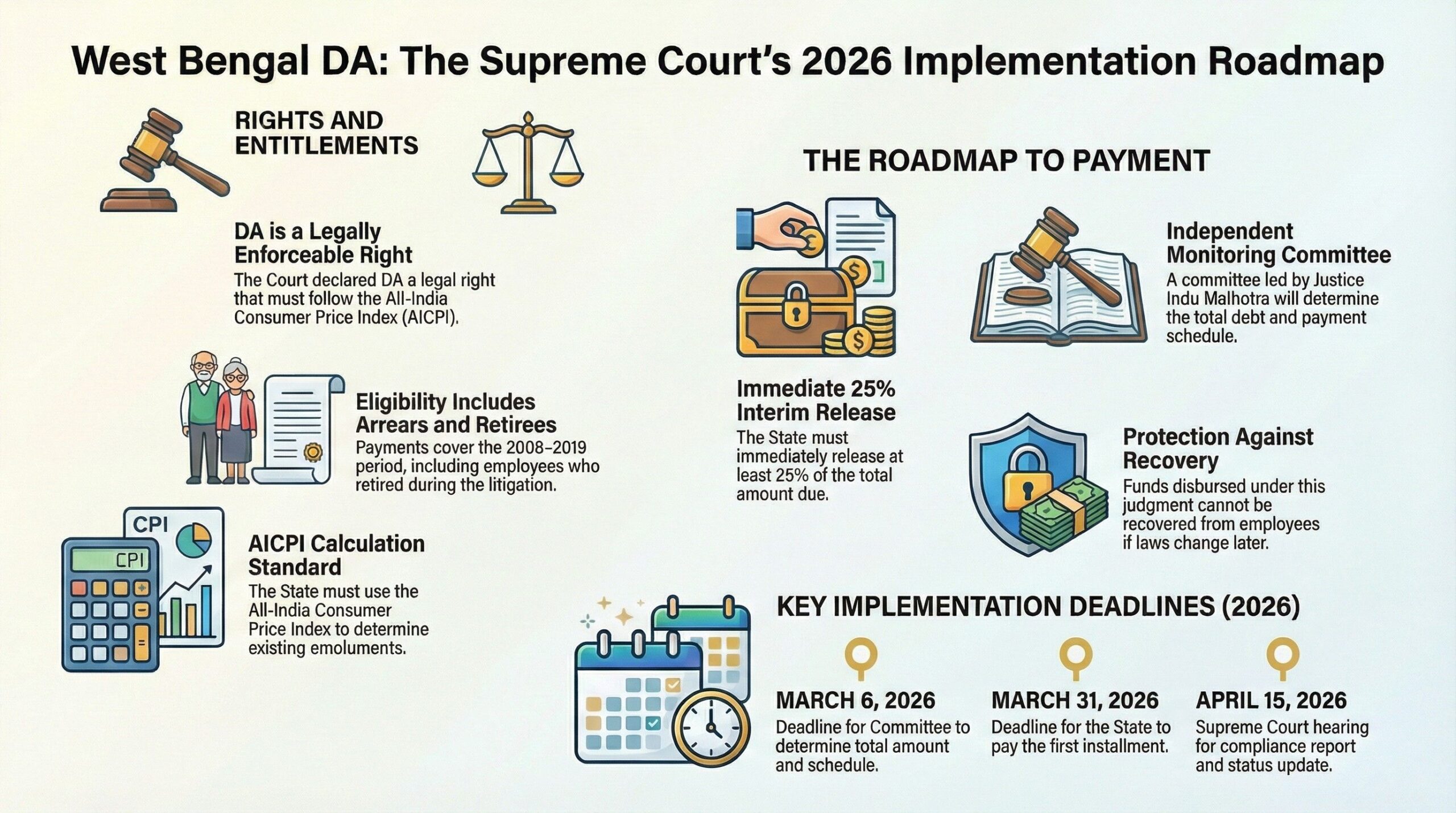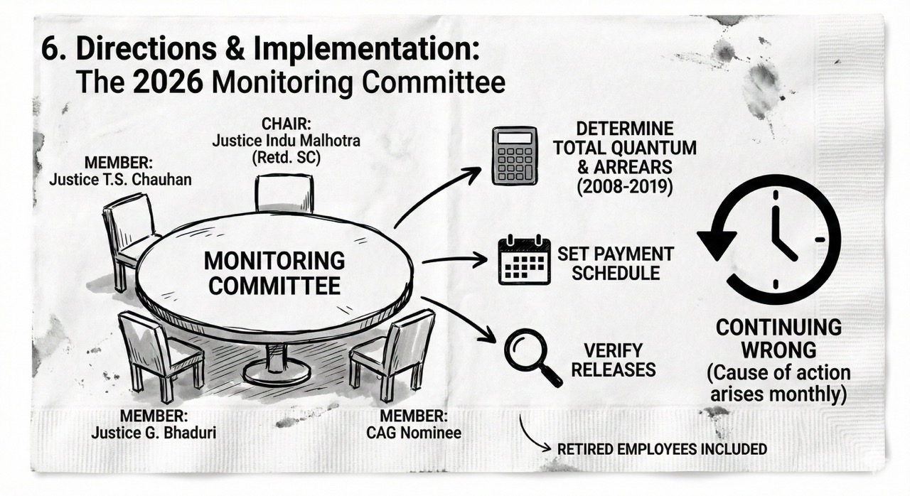 The Monitoring Committee To prevent the judgment from becoming a “paper victory,” the Court constituted a high-level Monitoring Committee to oversee the structured release of arrears.